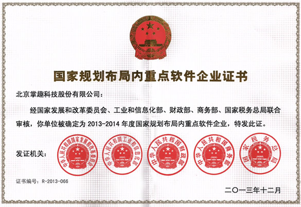 Certified Key Software Enterprise by the China Ministry of Industry and Information Technology