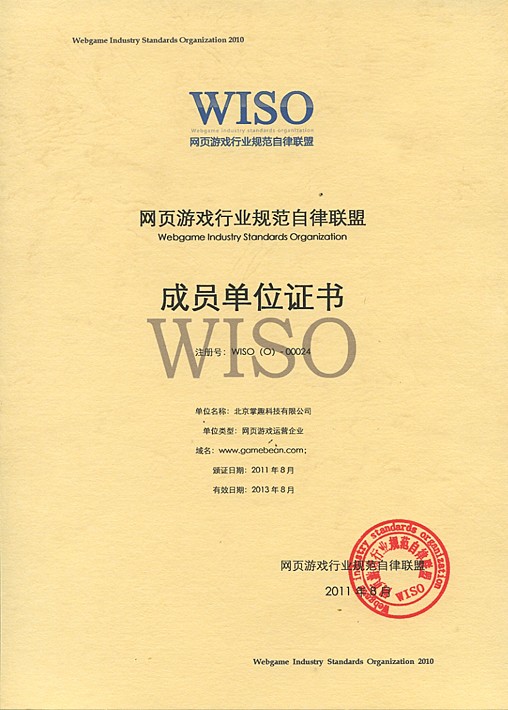 Accredited enterprise by WISO (Web game Industry Standards Organizations)