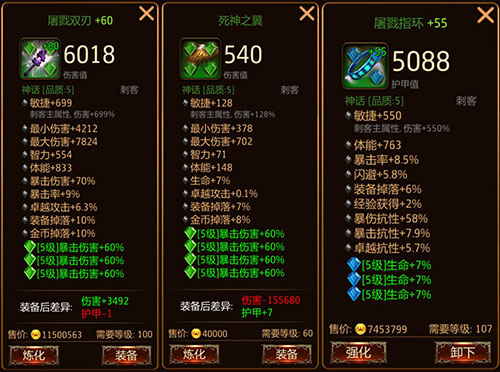 关于刺客所需要提高的敏捷、体力、生命值、暴击伤害这几大点,四大宝石中蓝宝石和绿宝石是刺客镶嵌首选。蓝宝石镶嵌在防具上时能提高体力值,镶嵌于饰品时则能提高生命值,当绿宝石镶嵌于武器或者翅膀时能提高暴击伤害,镶嵌在防具上时能提高人物敏捷属性,所以推荐武器和翅膀都镶嵌提高暴击伤害的绿宝石,以5级绿宝石来说,每颗5级绿宝石就能增加60%暴击伤害,若3洞武器则能增加180%的暴击伤害。防具同样推荐能提高敏捷的绿宝石,5级绿宝石每颗能增加25点敏捷,则全身防具加成可达400点。而人物饰品可镶嵌增加生命值的蓝宝石,5级蓝宝石单颗可增加3%生命值,饰品若为3洞则能增加9%生命值,根据人物基础生命值获得生命值加成。