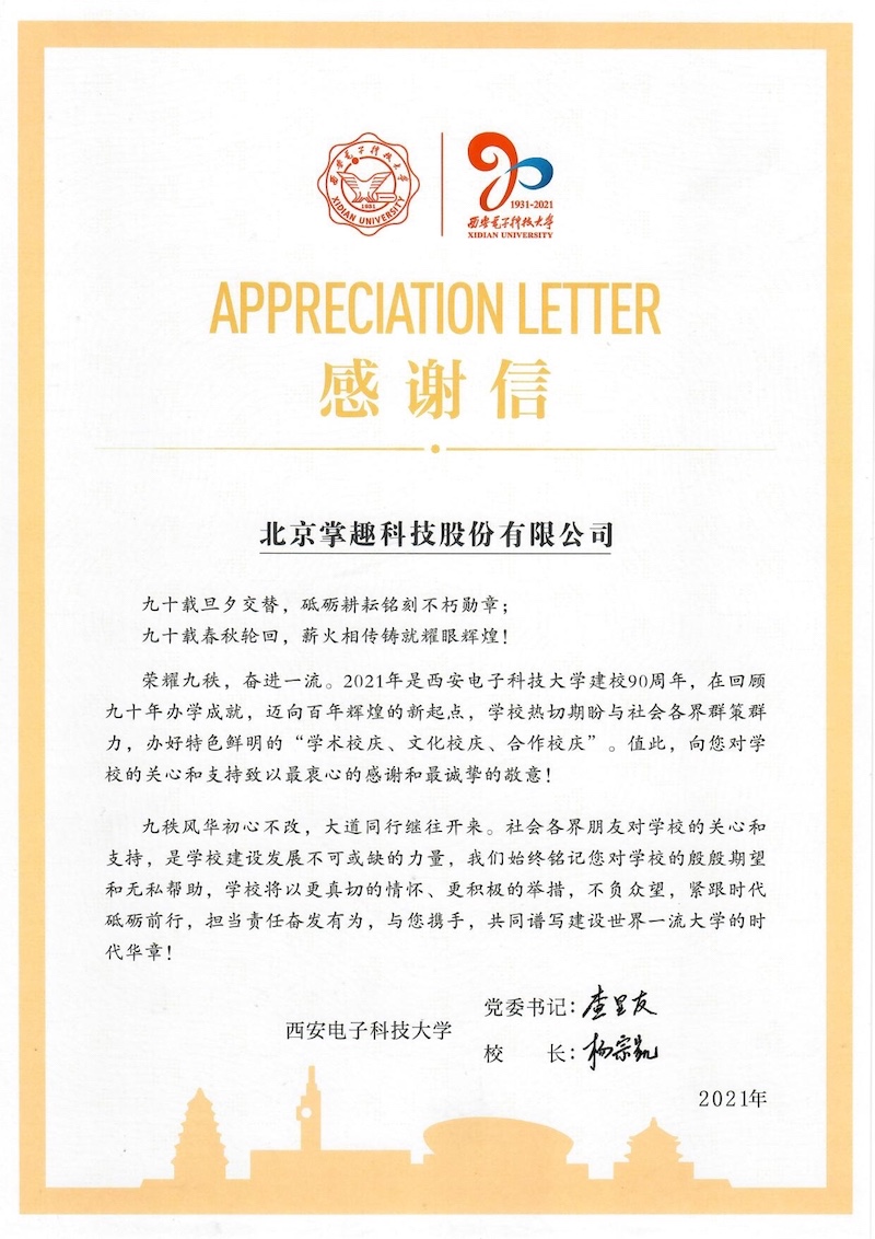 西安电子科技大学感谢信