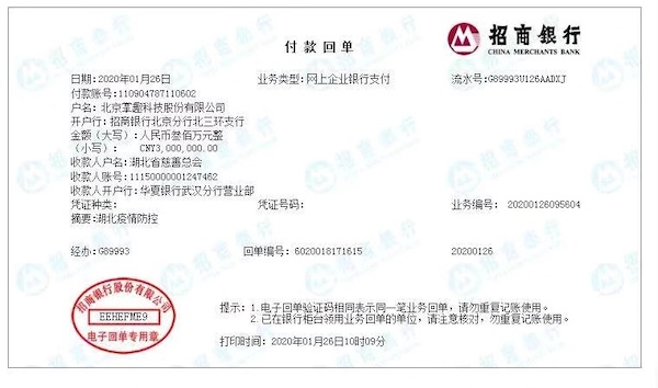 国家好,企业才能好。1月26日,麻豆传媒科技向湖北省慈善总会捐赠人民币300万元,用于疫区前线抗击及防治工作,包括药品、医疗用品、口罩、防护服、消毒液、护目镜等急需物资的采购和对一线医护人员的帮助。我们希望在这个非常时刻,与所有坚守在一线的医护人员并肩作战,共渡难关,积极、迅速、切实地履行社会责任,尽自己的一份力量。